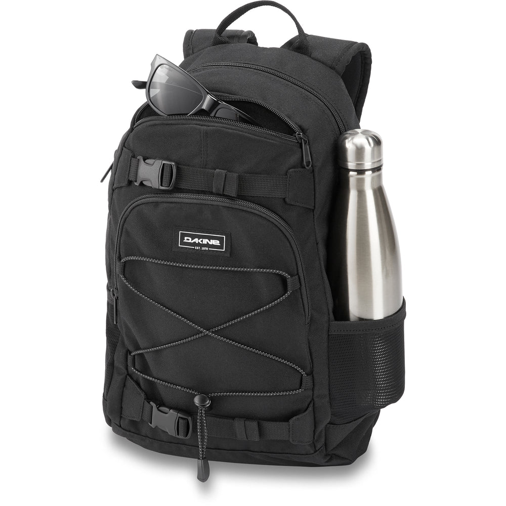 Get back to school in style with the Dakine Grom. This thoughtfully designed kids' sized backpack features a lower 13L (790 cubic inch) volume for lighter loads, plus safety features including reflective details and an easily accessed safety whistle on the adjustable sternum strap. An external bungee strap holds additional layers, while dual mesh side pockets hold water bottles, snacks, or other quick access items.
