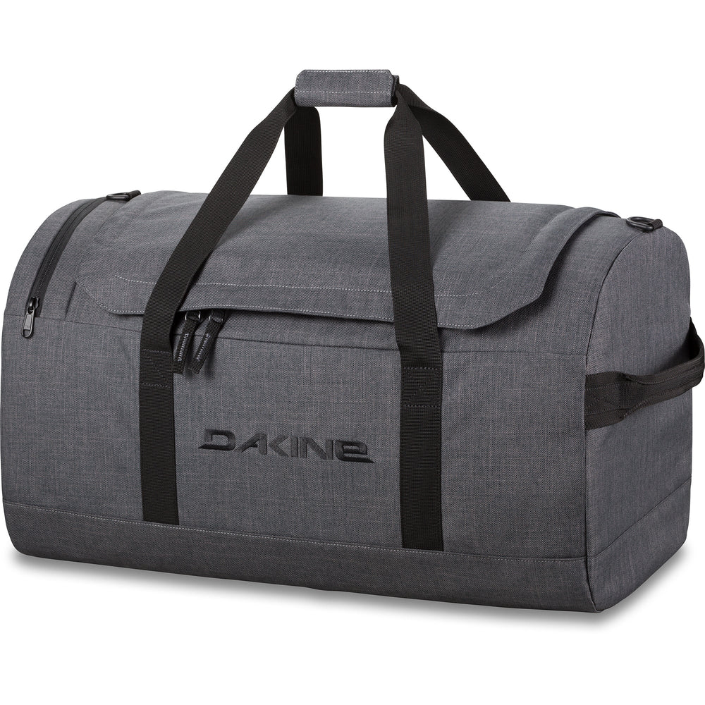 Gear hauling and road tripping made easy. It's hard to beat the all-around versatility of a durable duffle bag. For extended road trips and gear-intensive weekends, the 70-liter Dakine EQ Duffle has the space you need to pack the goods. A full-length U-shaped opening makes for easy access to a generous main compartment. There's a zip end pocket to keep small items easy to find, and the whole bag stuffs into the end pocket for easy storage when empty.